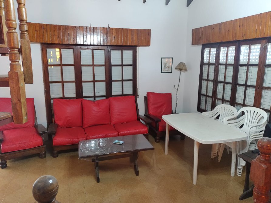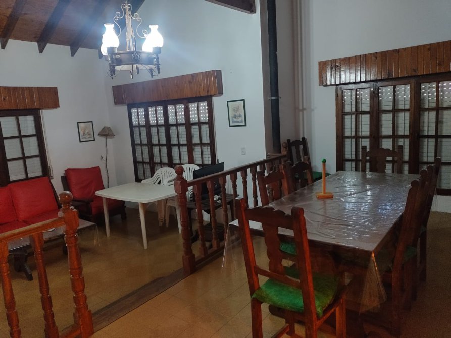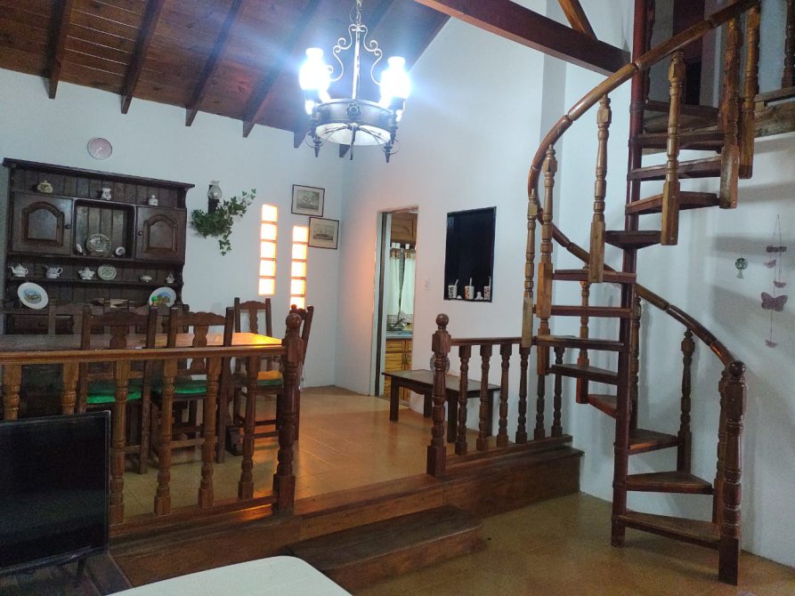 Chalet en 2 plantas. PB 3 dormitorios con placard - baño principal - toilette - Cocina - Comedor - Living en desnivel - PA Sala de lectura, baño con ducha - Entrada de auto pasante - Amplio fondo libre con quincho y parrilla - Tv cable - Micrrondas - Heladera con freezer - Wifi